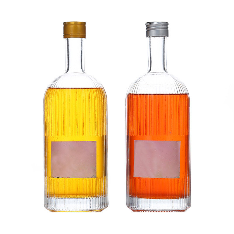 Wholesale Empty Vertical Stripe Clear Glass Wine Beverage Bottle Glass Liquor Bottle with Stoppers